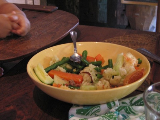 It turns out the culprit to the burn-o-rama was the tiniest piece of red chili, which looked like a piece of red pepper. Poor mom! She immediately spit out the chili, but it was already too late. The damage was done and she no longer had feeling on her tongue, or her entire mouth for that matter, for a good 10 minutes! Feeling sorry for mom’s pain, dad and her friend each tasted a minuscule piece of chili out of compassion. It was indeed extremely spicy and all three were now suffering. Another round of Bintang for everyone to help soothe the burning tongues…