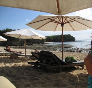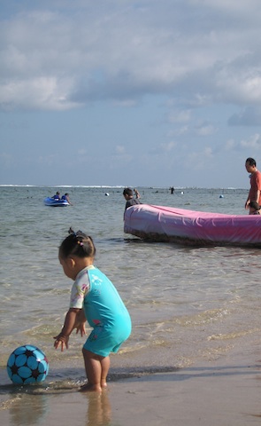 I’d heard many great things about this beach situated in Nusa Dua and was really dying to head out to see for myself. The waters are supposed to be really clear and the currents ‘gentle’ enough for a good time to be had by the entire family. I finally got a chance to go with my second-cousins when they came to visit us in Bali – and they LOVE the beach as well….Hmmm, my first competition to becoming the best Beach Bum around…
