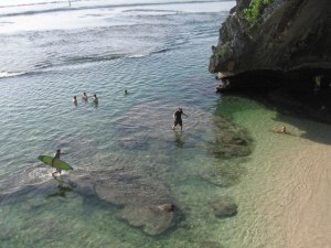 This beach is also on the Bukit Peninsula, on the way to Uluwatu and has some killer stairs to go down to access the beach. This spot is more ‘cozy’ and perhaps more ‘romantic’ for those who are into that kinda stuff…As you make it down the steps, you feel like you’re walking in a deep cave, Ã la Indiana Jones, and you then see your treasure at the end – Beautiful clear water waiting for you to dip your toes into!