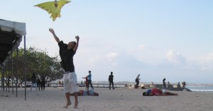 Trying to fly a kite at Sanur Beach (NB: those 3 guys were sleeping there all afternoon!)